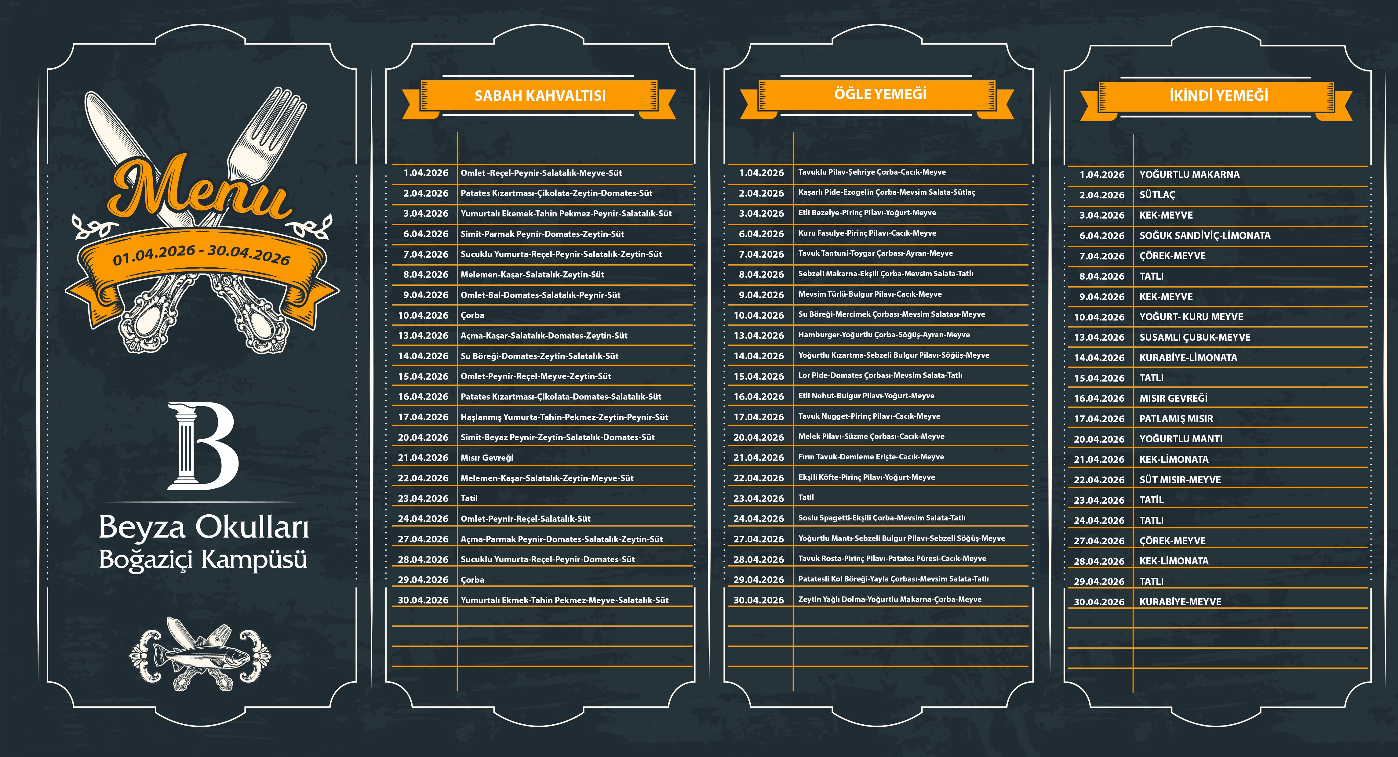 BEYZA BOĞAZİÇİ NİSAN AYI YEMEK LİSTESİ
